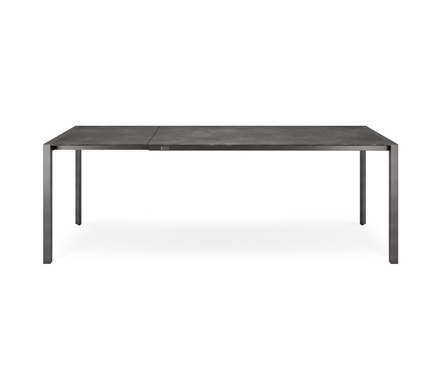 Раздвижной стол с профилем из полированной нержавеющей стали или без него с тиснением под графитовый белый цвет. Столешница и надставки из матового белого постформованного или серого оксидного (LM06) ламинированного дерева. Доступен в круглой форме и в размерах: 105/155x80x75h 120/170x80x75h 140/190x80x75h 140/200x90x75h 160/220x90x75h