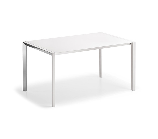 Cтол с профилем из полированной нержавеющей стали или без него с тиснением под графитовый белый цвет. Столешница из матового белого постформованного или серого оксидного ламинированного дерева. Доступен в прямоугольной форме и в размерах: 105x80x75h 120x80x75h 140x80x75h 140x90x75h 160x90x75h