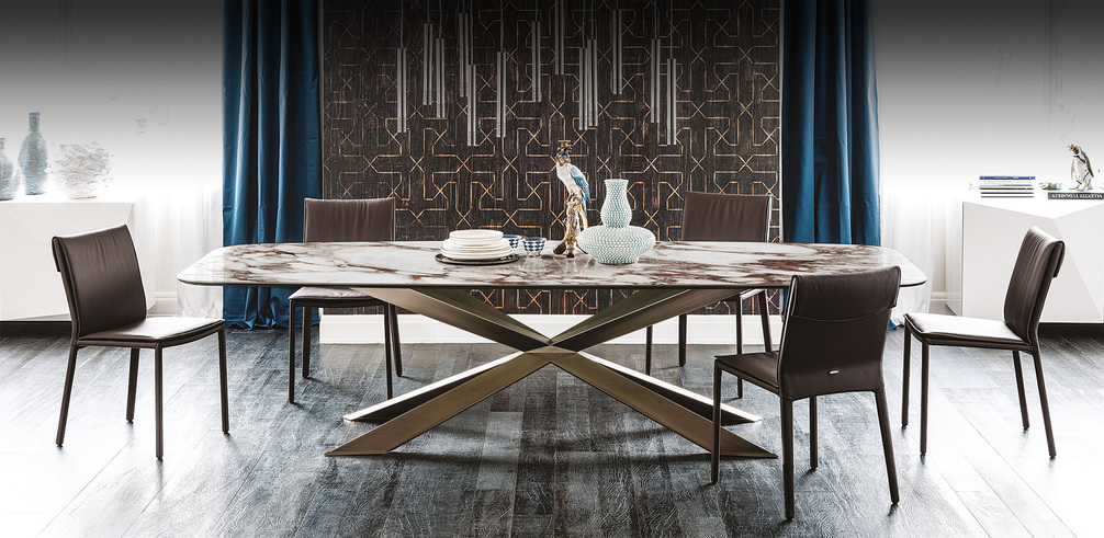 Spyder — это современный стол , способный стильно украсить столовую благодаря тщательно подобранным деталям и превосходным материалам.
