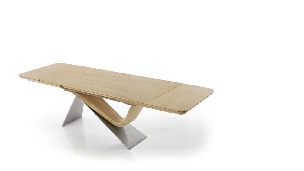 Функциональность соответствует смелому дизайну, благодаря выдвижной функции этот современный обеденный стол может быть увеличен без каких-либо проблем.