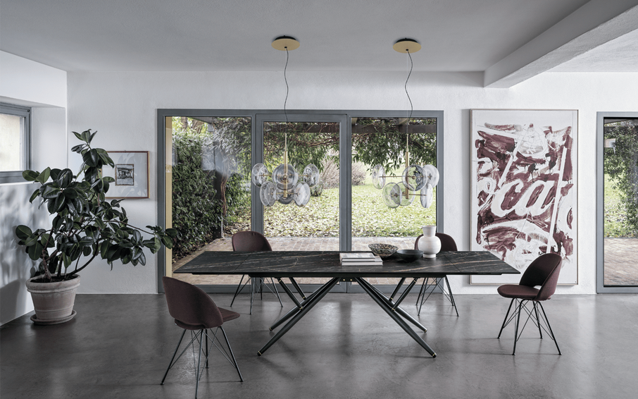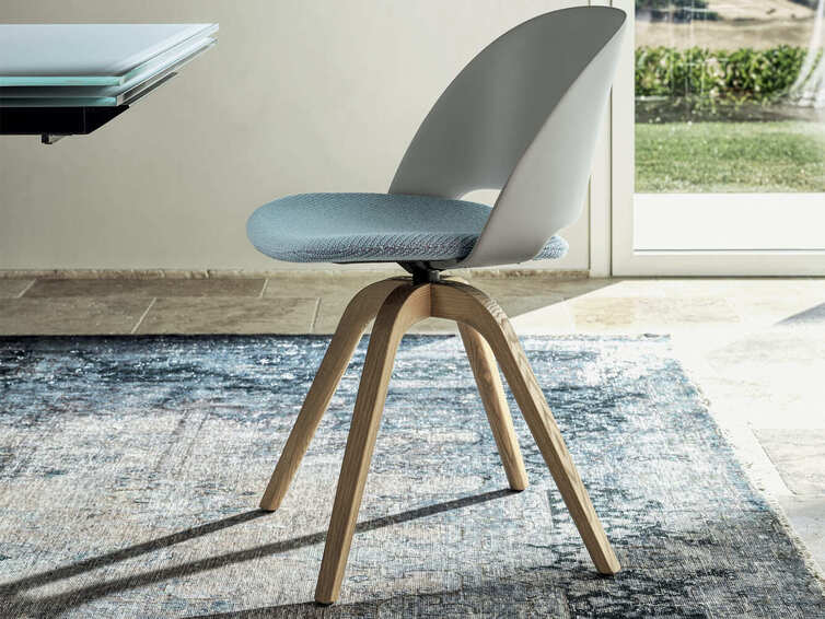 Стул с массивной деревянной или стальной рамой круглого сечения, решеткой или стальным стержнем. Спинка и сиденье обтянуты экокожей, экокожей премиум-класса, техническим бархатом, тканью Mambo, тканью Lulù, водонепроницаемым нубуком, водонепроницаемым нубуком с принтом, чистой девственной шерстью, бархатом, тканью Decò, тканью Kvadrat fiel, тканью для хвоста Kvadrat и кожей премиум-класса. Доступен в размерах: 50х56х81/49