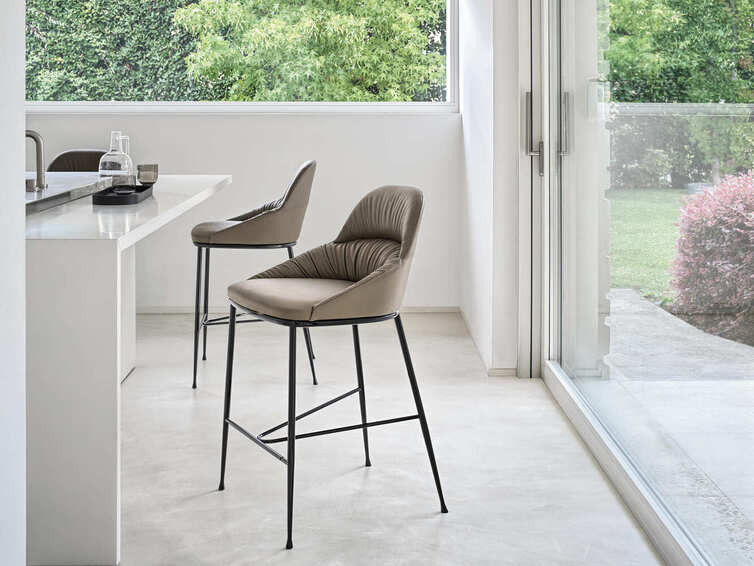 Табурет со структурой из лакированной стали, корпус обит экокожей, экокожей премиум-класса, техническим бархатом, тканью Mambo, тканью Lulù, водонепроницаемым нубуком, водонепроницаемым нубуком с принтом, чистой девственной шерстью, бархатом, тканью Decò, тканью Kvadrat fiel, тканью Kvadrat хвост и премиальная кожа