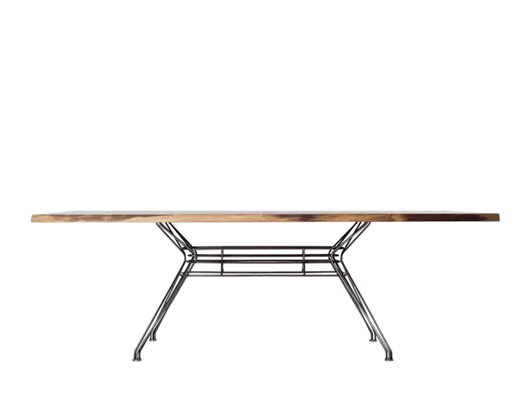 Неподвижный прямоугольный и эллиптический стол со структурой из лакированной стали. Столешница из векового окоренного массива дерева, массива дерева, массива дерева, шпона, хрусталя, устойчивого к царапинам хрусталя или супермрамора. Доступен в прямоугольной форме и в размерах: 200х75х106 250х75х106 250х75х116