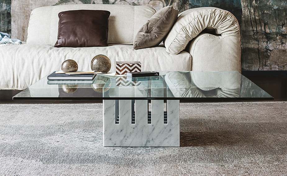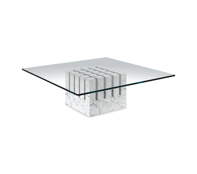 Журнальный столик с основанием из белого каррарского мрамора. Прозрачный стеклянный верх. Доступен в размерах: 100x100x32h 120x120x32h 130x70x32h