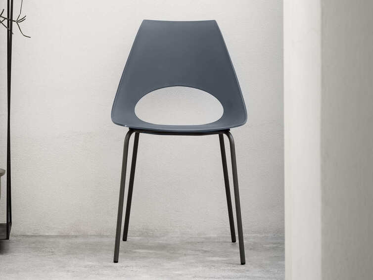 Стул со структурой из лакированной или хромированной стали, корпус из полипропилена
