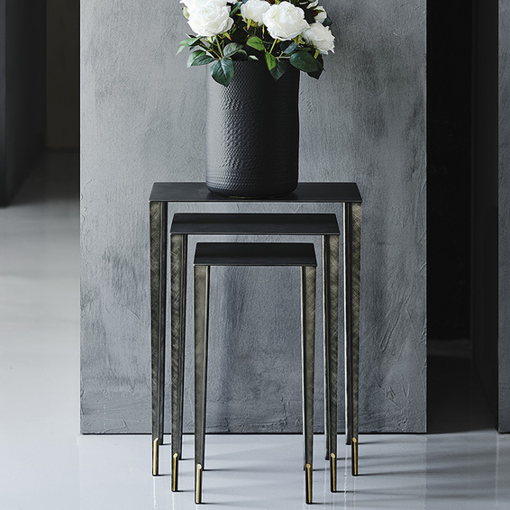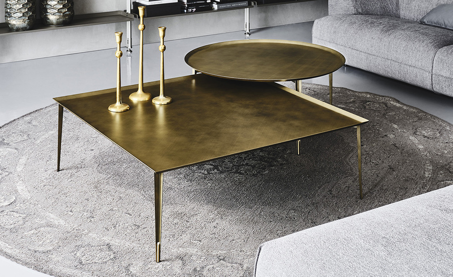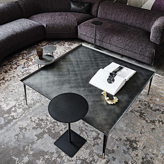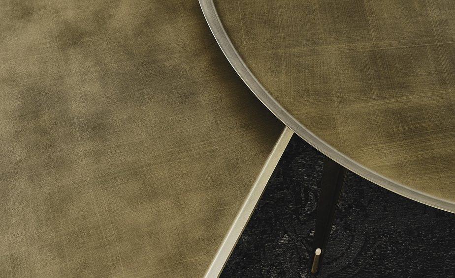 Журнальный столик со структурой из матовой латуни, матовой бронзы или матовой серой лакированной стали и деталями из латуни. Доступен в размерах: 120x120x40h 25x25x50h/35x25x55h/45x25x60h - Tris ø100x45h