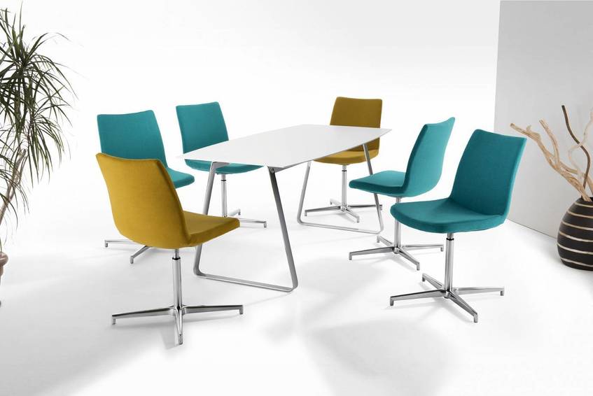Мягкое сиденье, вращающееся, с механизмом автоматического возврата, полированная алюминиевая основа, серые пластиковые направляющие
