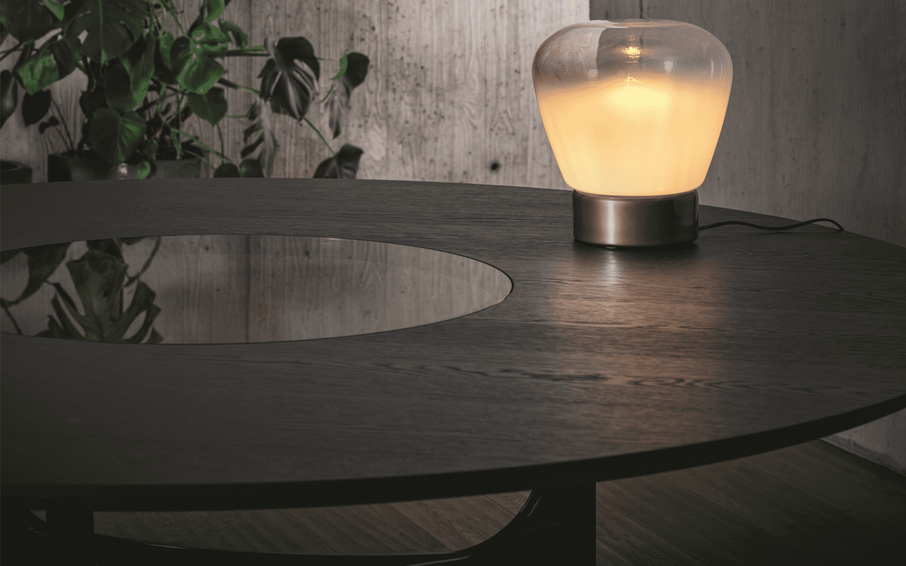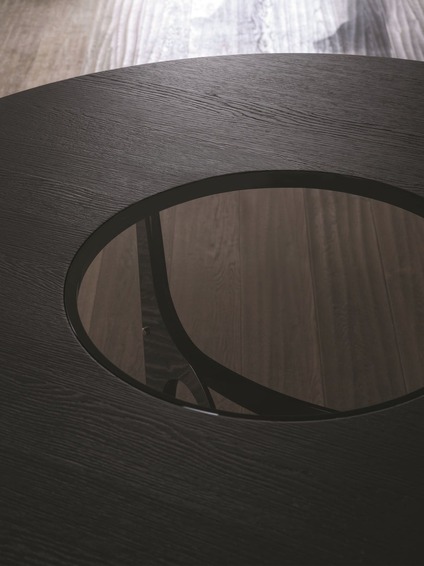 Неподвижный круглый стол со структурой и декоративными деталями из лакированной стали. Столешница из шпона, глянцевого хрусталя, устойчивого к царапинам хрусталя или кольцевая столешница с центральной вращающейся столешницей из глянцевого хрусталя, матового хрусталя, устойчивого к царапинам, или супермрамора. Доступен в круглой форме и в размерах: Ø 130х75 Ø 150х75 Ø 180х75
