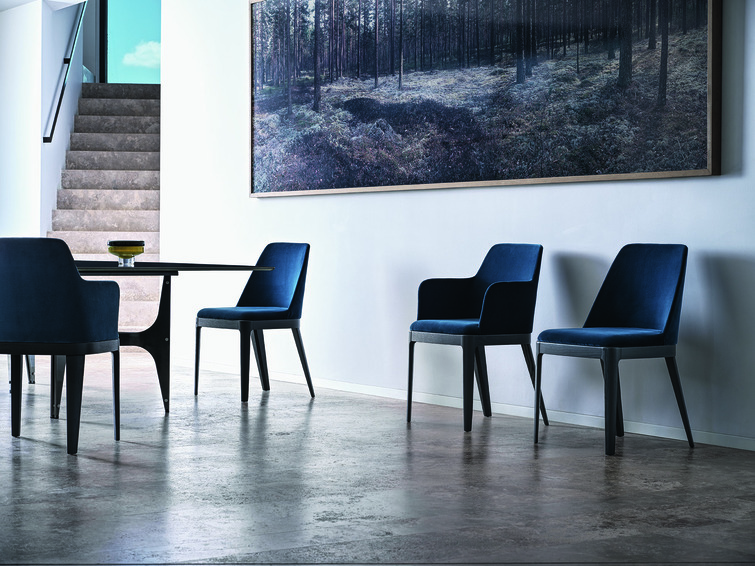 Неподвижный стол со структурой и декоративными деталями из лакированной стали, столешницей из массива дерева или супермрамора. Доступен в прямоугольной форме и в размерах: 250х75х106 300х75х120