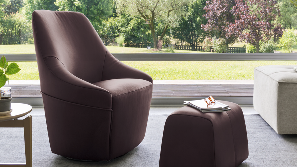 Кресло ALMA с мягкими формами на вращающемся металлическом основании. Прямые и изогнутые линии удачно сочетаются в этой модели, а подлокотники словно обнимают сидящего Декоративный кант вокруг спинки подчеркивает плавный переход от спинки к подлокотникам. Основу кресла составляет наполнитель из запатентованного полиуретана холодного отверждения, что гарантирует комфорт и долговечность в использовании. ALMA выполняется в любом цвете кожи или ткани по вашему выбору, вы также можете сочетать два разных цвета в одном кресле. Для полного расслабления мы рекомендуем использовать пуф/подставку для ног ALMA. Вращающееся кресло ALMA украсит как современный, так и классический интерьер гостиной или спальни.