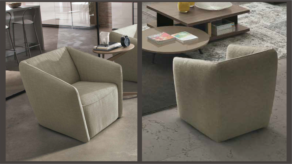 Aveta - удобное поворотное кресло с чистыми округлыми линиями, предназначенное для отдыха с сохранением всего необходимого в пределах досягаемости