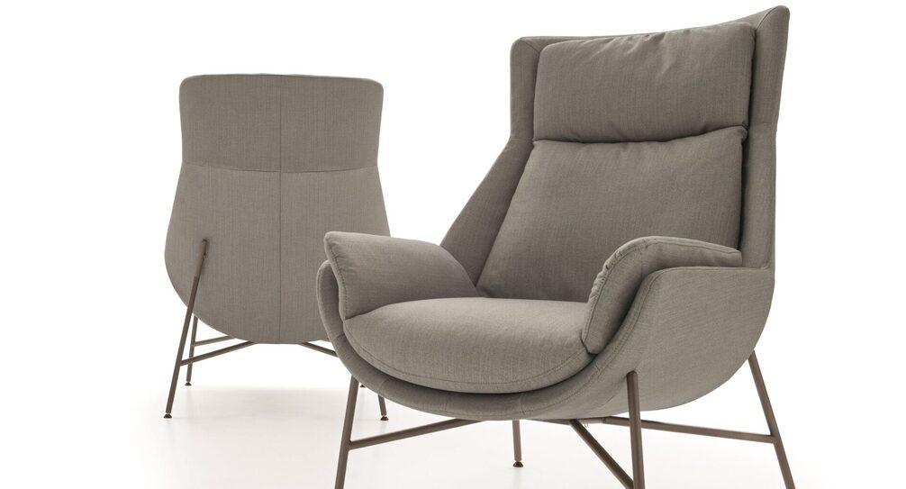 Дизайн, вдохновленный типичным внешним видом жуков. Конструкция разделена на три части и элегантно поддерживается узкими металлическими ножками. Внешние линии тугие и четко очерченные, в то время как мягкие части мягкие и обильные.