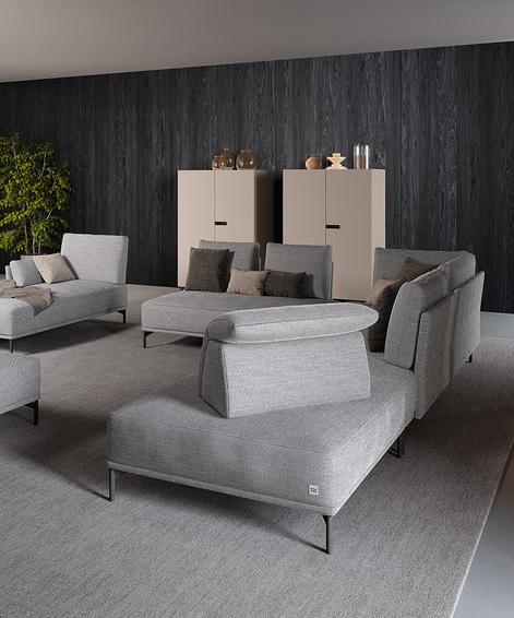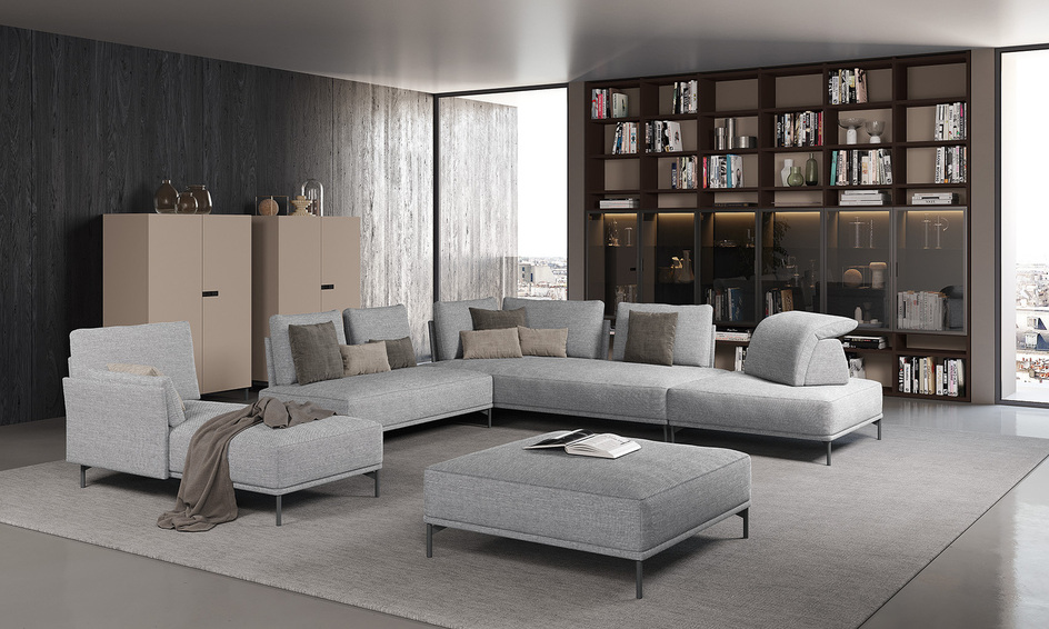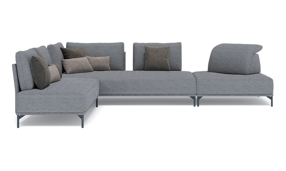 Композиционная свобода, тщательно продуманный дизайн и современный характер придают жизнь этому дивану, уникальному с точки зрения стиля и практичности. Сущностная природа элементов находит свое максимальное выражение во множестве возможных комбинаций. Поддержка подголовника Опора спинки и подголовника свободно сидит на элементах сидения и позволяет принимать до шести различных положений благодаря защелкивающемуся механизму из хромированной стали.