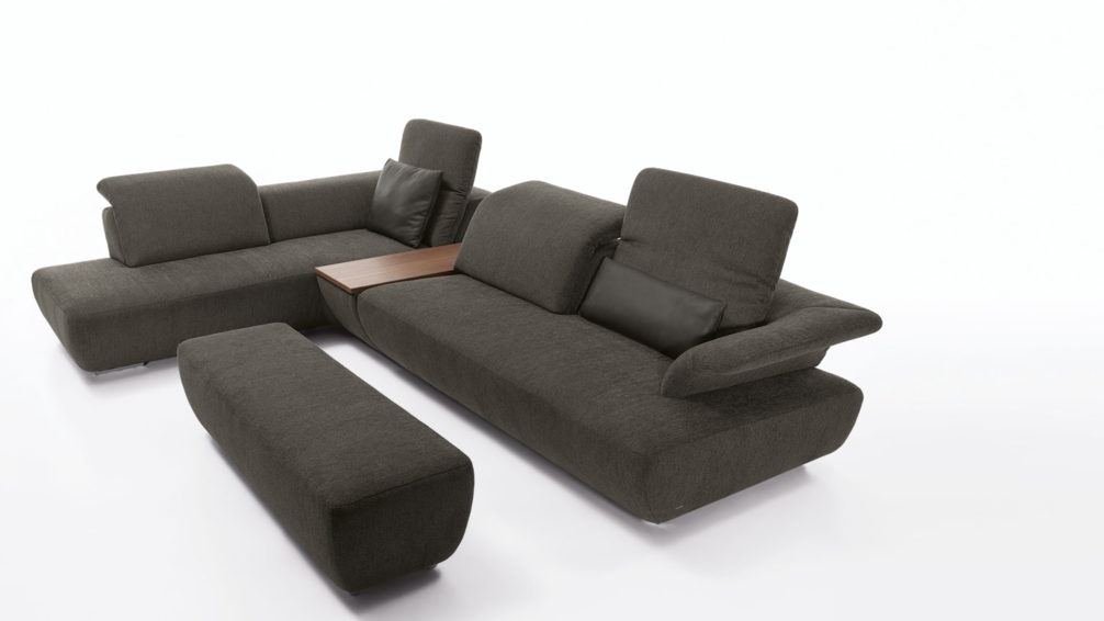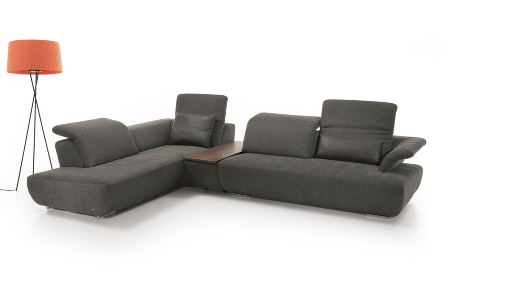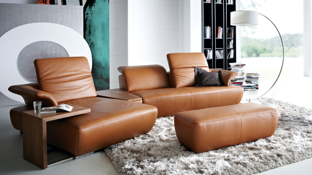 Дизайнерский диван полон сюрпризов, на котором можно гораздо лучше расслабиться, чем на обычном диване. Декоративные швы с контрастной нитью подчеркивают чёткие линии кожаной обивки. Регулируемые подушки спинки для комфортного сна. Функция спинки для регулировки глубины сиденья. Промежуточный стол: практичная полка и навесная с местом для хранения. Промежуточный стол со звуковой системой: позволяет воспроизводить музыку. Выбранные элементы могут дополнительно быть со светодиодной подсветкой.
