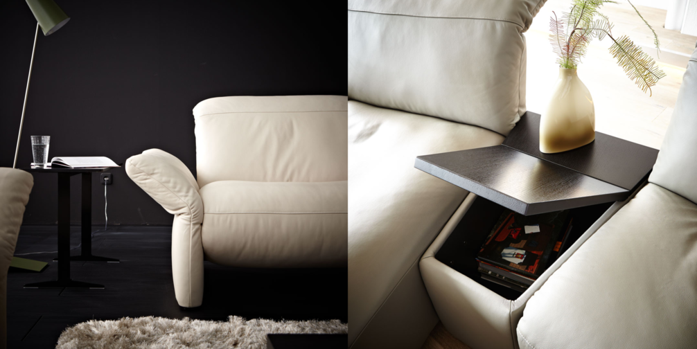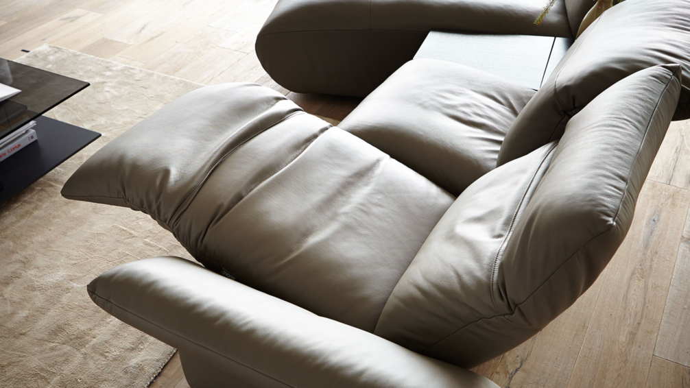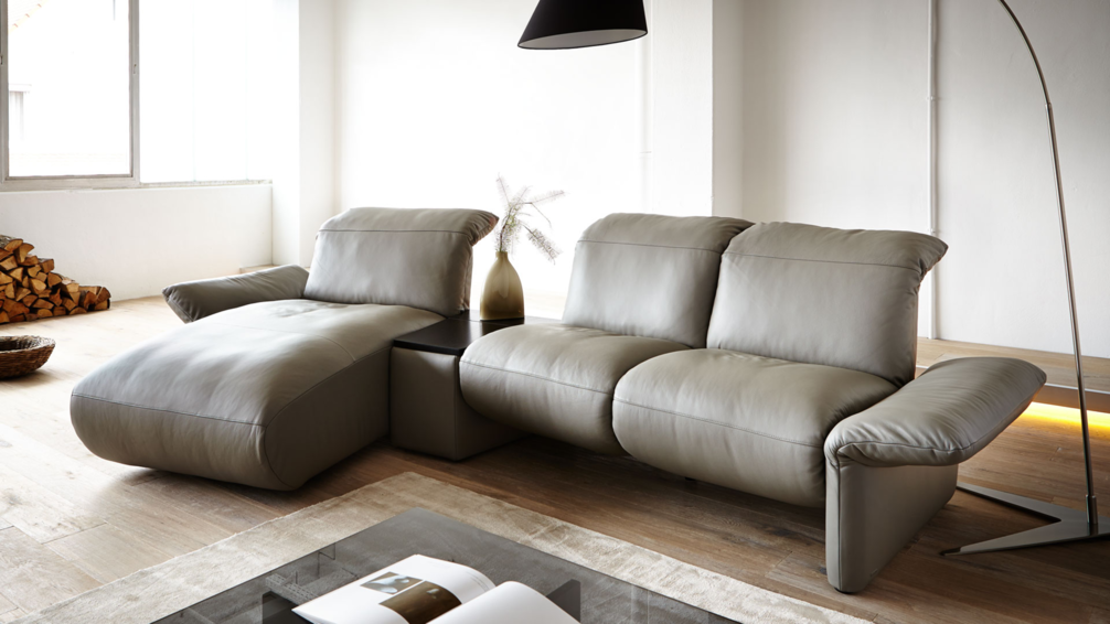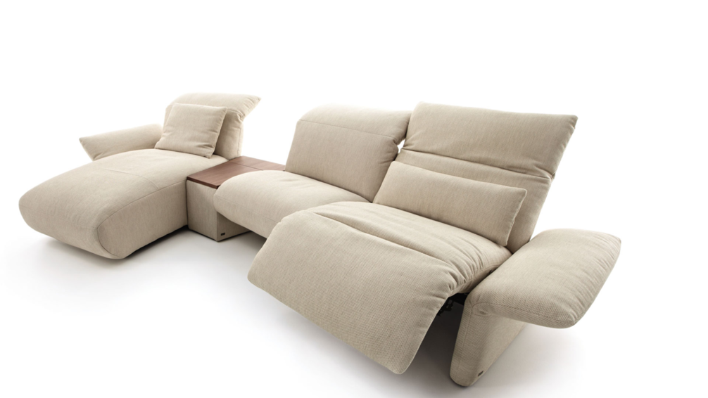 Серия прямых и угловых модульных диванов в современном стиле. Высота спинки и подголовника регулируется. Подлокотники трансформируемые. Модель оснащена специальным механизмом, регулирующим глубину и положение сиденья и высоту подставки для ног - независимо друг от друга (т. н. функция "TV-кресло"). Управляется с помощью электропривода с технологией TOUCH IT (на заказ). Обивка - кожа или текстиль из ассортимента фабрики.