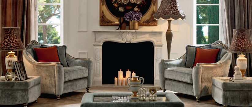 Эта изысканная коллекция, вдохновленная историей знаменитых вечных любовников, отличается утонченным дизайном и тканями высшего качества. Диваны и кресла украшены изысканной ажурной резьбой с цветочными мотивами и отделкой сусальным серебром. Мерцающий бархат элегантно облегает мебель, в том числе журнальный столик/пуфик со стеклянной столешницей.