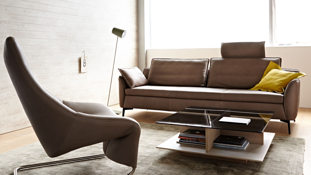 Кожаная коллекция. Качающиеся подлокотники, с любовью обработанные открытые швы: они обеспечивают необычайный шарм и благородный внешний вид. NOVELL, привлекательная и интересная модель с различными комбинациями для индивидуальных потребностей. Диван, на котором можно комфортно отдохнуть и чудесно расслабиться. встроенный коврик для сидения для идеального отдыха многочисленные вариации через свободные подушки переменный подголовник открытые швы, соответствующие цвету или в отличие от эталонного цвета