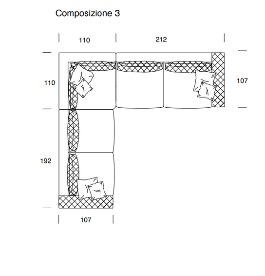 Несущая конструкция из массива дерева, набивка подушек сиденья из натурального гусиного пуха со вставкой из пенополиуретана высокой плотности различной плотности. Подушки для спины из смешанного перья, обтянутые стеганой тканью. Подушки полностью съемные. Отделка и ножки из окрашенного металла с защитой от прикосновения. По запросу доступны без простегивания.