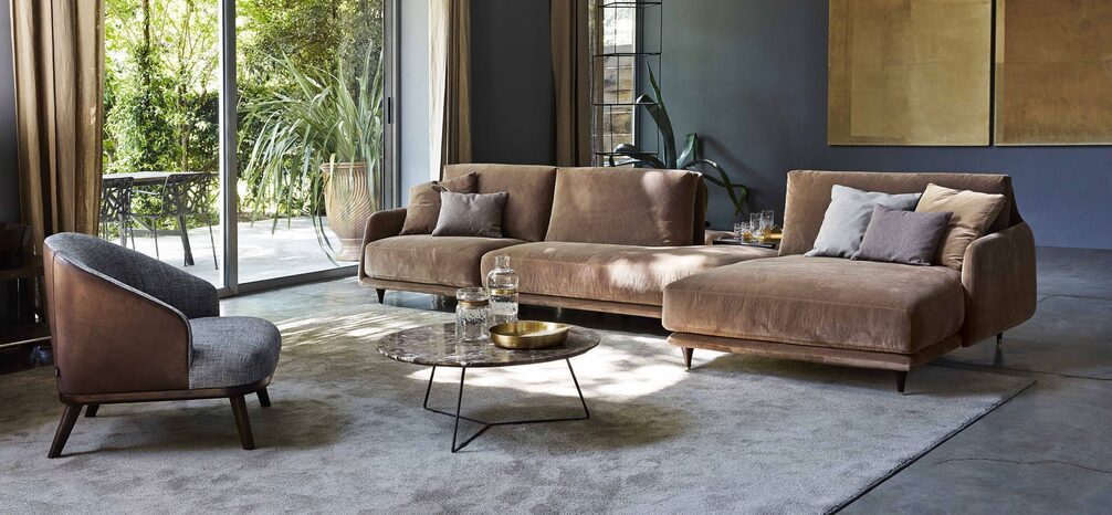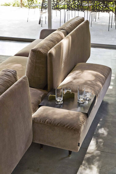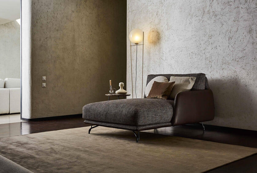 Elliot предлагается также в варианте комбинированной обивки из кожи и ткани, и наклонными ножками в разных версиях, на выбор. Также доступны эксклюзивные модули: оригинальный мягкий пуф может использоваться как сидение или элемент- столик, если его дополнить столешницей из окрашенной листовой стали. Дизайн ножек Epoque выполнен в стиле ретро, в форме прогулочной трости, воздавая должное космополитному и изысканно- эксцентричному стилю европейских столиц.