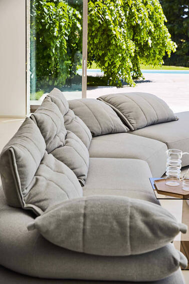 Броский дизайн этого дивана принадлежит Анне фон Шевен, скандинавскому дизайнеру, любительнице тщательной отделки, вдохновленной концепцией объединения скандинавских традиций и чистоты форм с особым вниманием к деталям. Подушка на подушке и скамья. Оригинальные детали по бокам не только прекрасно смотрятся, но и приятны на ощупь. Бесшумный механизм позволяет поднимать все подушки, что обеспечивает телу полное расслабление, а асимметричные модули придают современную нотку проекту этого дивана, который может быть размещен в просторных помещениях или в центре гостиной.