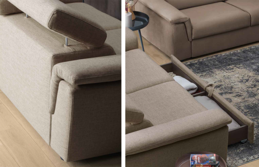 Механизмы: механизм подголовника; механизм скольжения сидений; ручной и электрический механизм - реклайнер; выдвижной пуф; большой ящик / контейнер