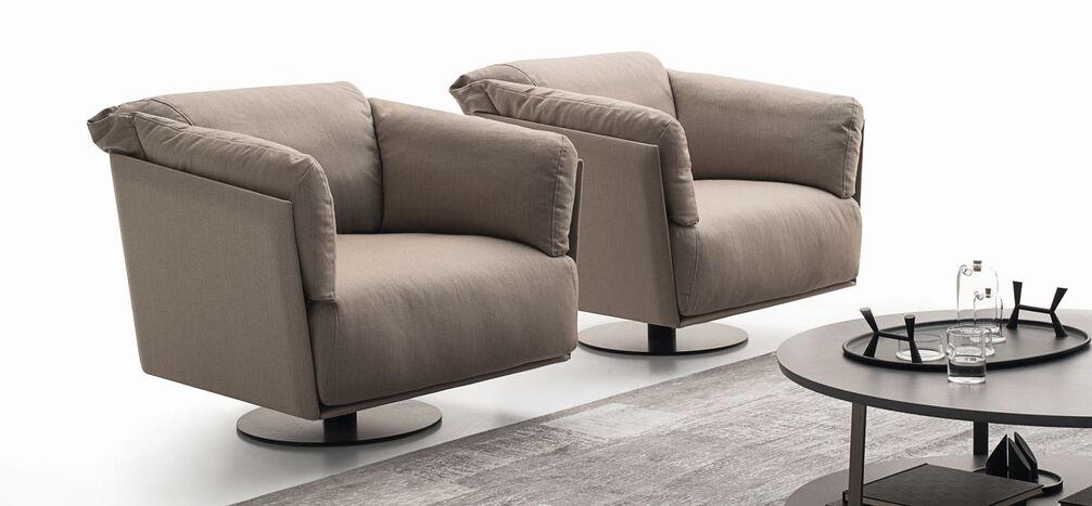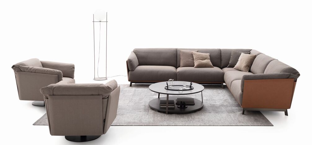 Это удивительно комфортный диван с выверенными пропорциями, превращающий элегантность в уют и близость; пропорции сидения и спинки позволяют принять любое удобное положение или расслабиться за беседой. Наружный каркас обтянут кожей или тканью, обивка подушек может быть выполнена в контрастных или монохромных цветовых сочетаниях; Kailua — это проект, воплощающий спокойствие, без недостатков и излишеств.