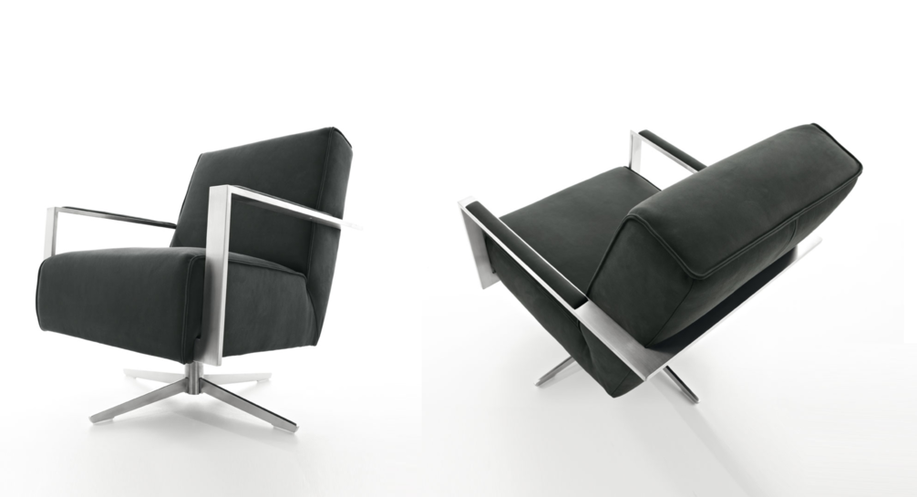 Респектабельное современное кресло JENSON от немецкой фабрики мебели Koinor. Шикарная модель для любителей отдохнуть перед камином или с книгой в гостиной. Изделие установлено на металлической хромированной ножке с четырьмя опорами и оснащено подлокотниками в виде рамы из того же материала. Обивка из натуральной кожи может быть выполнена в любом цвете по каталогу фабрики.