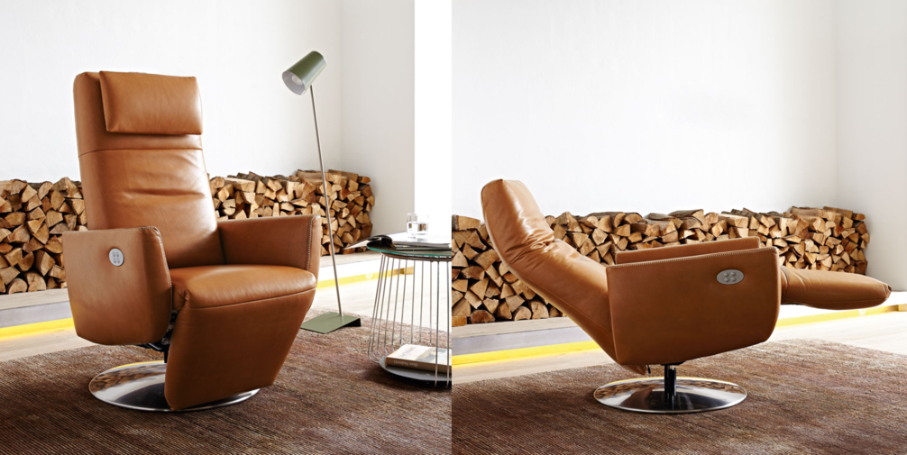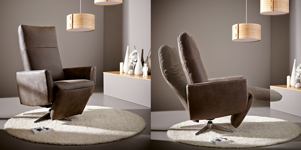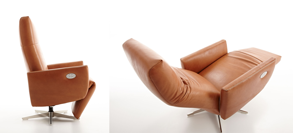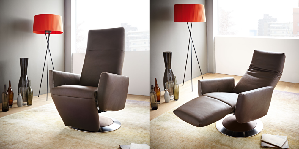 Эффектное стильное кресло SEAN повышенной степени комфортности. Современная модель в дорогом исполнении декорирована крупной строчкой и металлическими элементами. Изделие установлено на ножке с подставкой-крестовиной, оснащенной газлифтом, и обито натуральной кожей в оттенке на выбор по каталогу фабрики. Кресло раскладывается почти горизонтально, а длинная подножка позволяет сидящему полностью расслабиться и отдохнуть с комфортом.