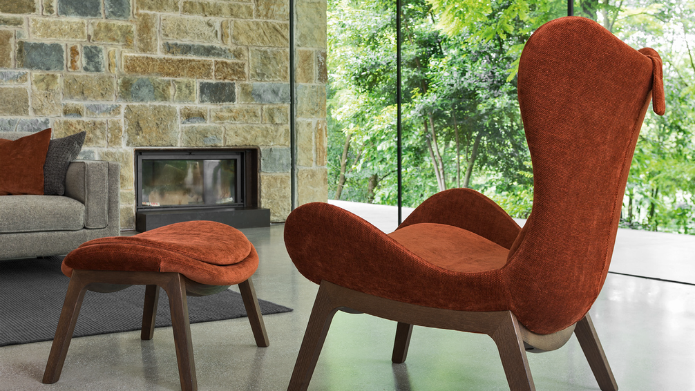 LAZY - удобное поворотное кресло с чистыми округлыми линиями, предназначенное для отдыха с сохранением всего необходимого в пределах досягаемости