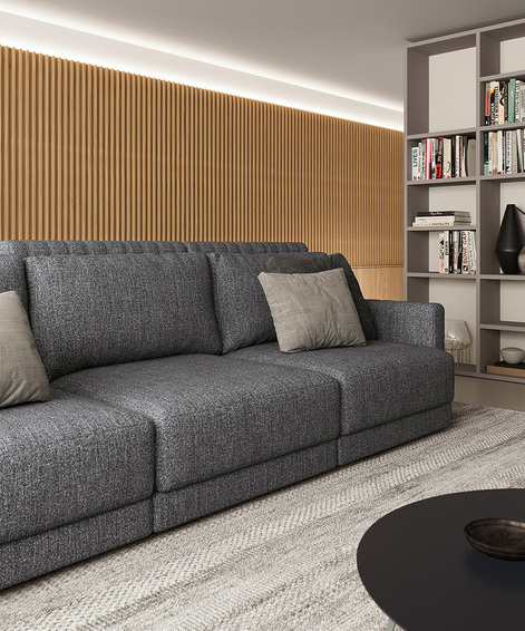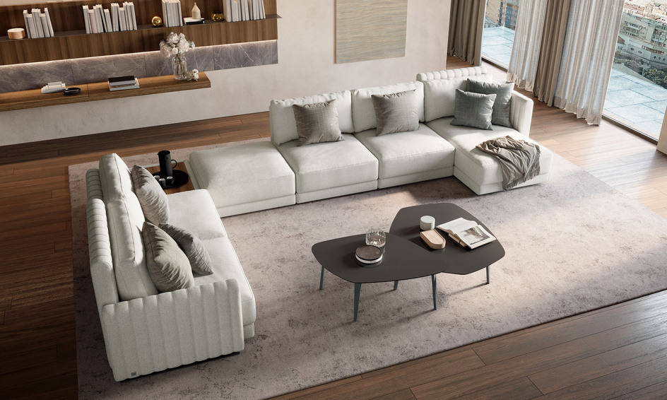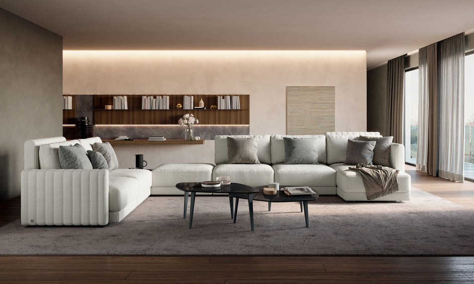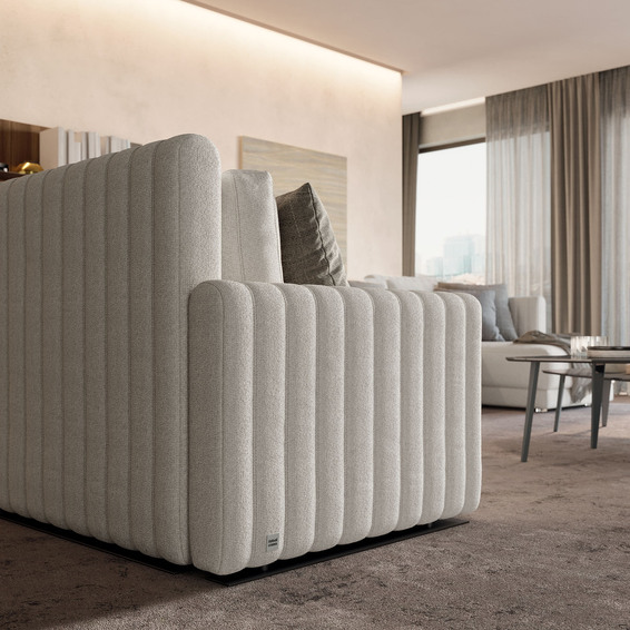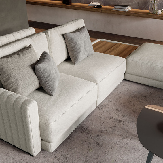 Чрезвычайно универсальная система сидений с точки зрения композиции, а также выбора и сочетания предлагаемых материалов. MADISON — это модульный современный диван с яркой внешней привлекательностью, в котором легко сочетаются геометрический дизайн конструкции с мягкостью сидений и спинок. Его модули полностью обиты съемной тканью Bentley 0400 Penicellin и вместе с шезлонгом предлагают безграничные возможности персонализации для создания решения, наиболее подходящего для личных потребностей и жилого пространства.