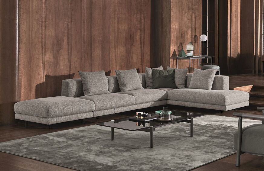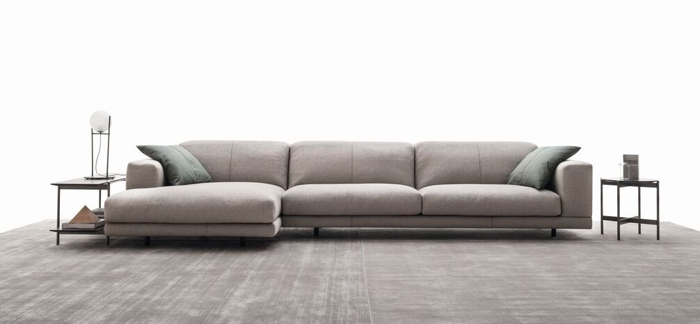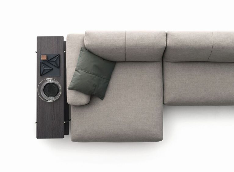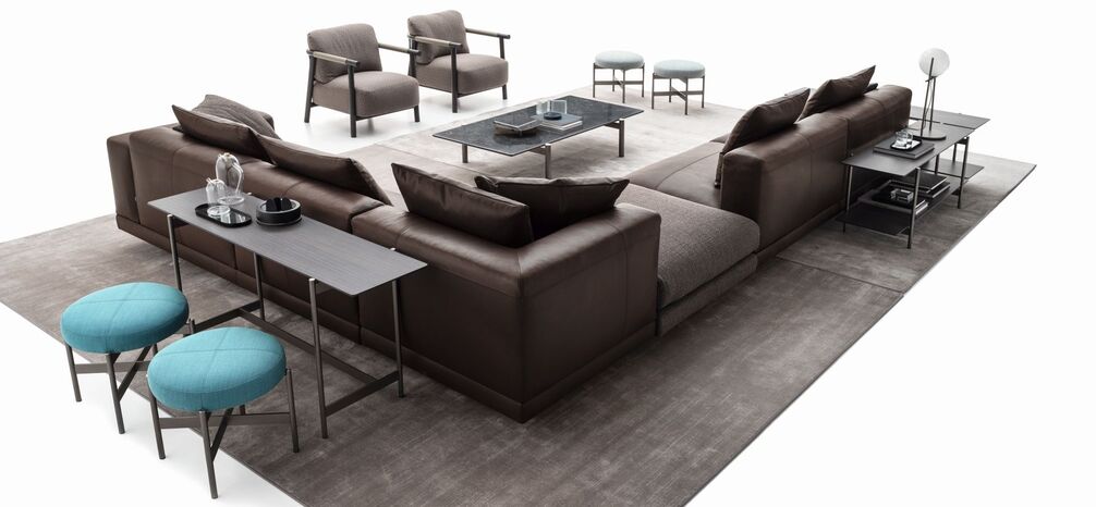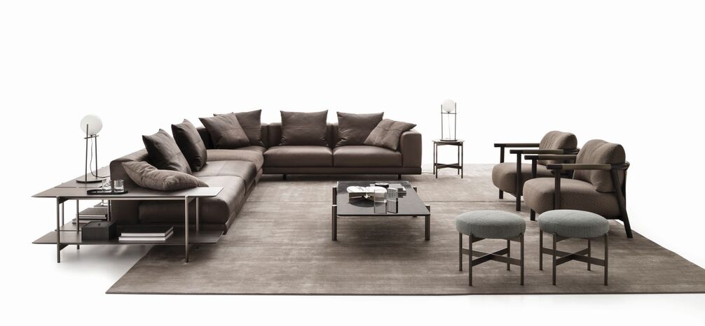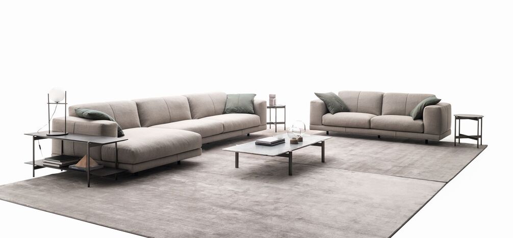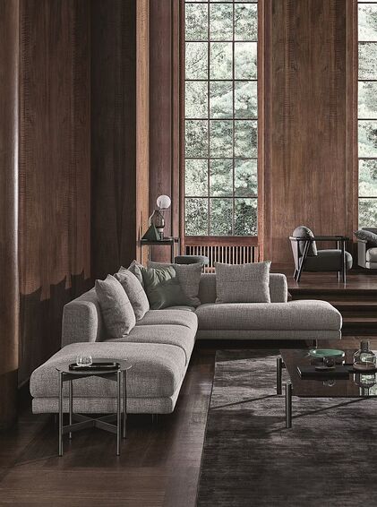 Мягкие объемные ткани, простые линии, изысканные пропорции и искусно выполненные детали создают уютную и элегантную диванную систему