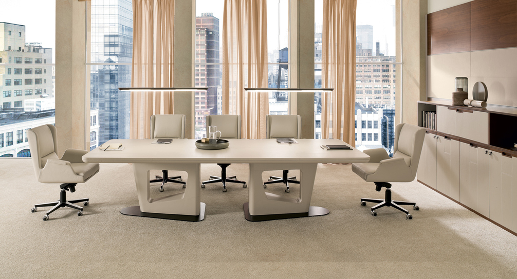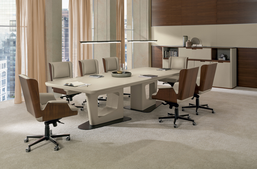Это первая коллекция для офиса, разработанная Умберто Аснаго, который старается создать элегантный, но в то же самое время функциональный предмет мебели, выделяющийся необыкновенными характеристиками поддерживающих рабочие поверхности деталями