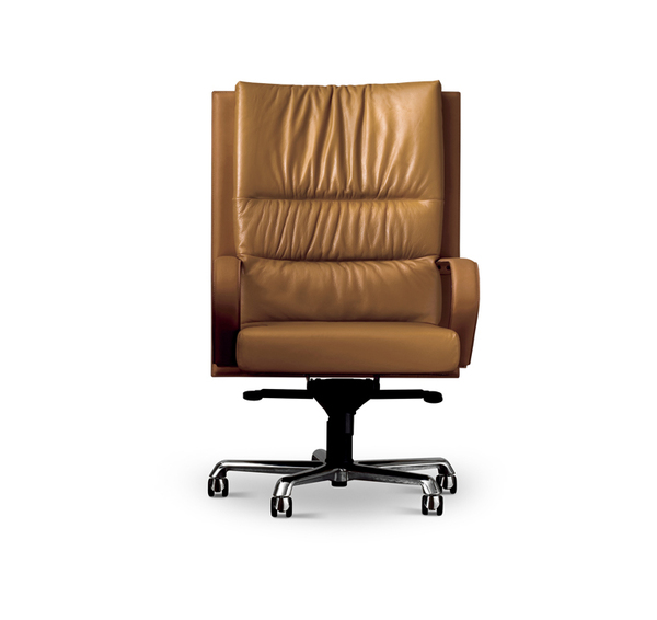 Каркас спинки выполнен из овальных стальных труб, соединенных с пластинами из вспененного полиуретана и с обтяжкой из шорно-седельной кожи. Подлокотники – плоские стальные изогнутые, соединенные с пластинами из вспененного полиуретана. Сиденье имеет вставку из трубчатой стали, погруженной с помощью холодной штамповки во вспененный полиуретан; подушка спинки выполнена из полиуретана холодного вспенивания. Кресла имеют 5-лучевое крестообразное основание из блестящего алюминия, оборудованы поворотно-вращающимся механизмом, с регулируемой высотой с помощью газ-лифта, имеют также механизм качания. Ножки стульев выполнены из хромированного стали.