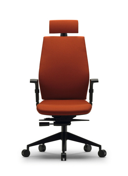 Регулируемая по высоте спинка с поясничной опорой, регулируемый по высоте и наклону подголовник, регулируемые по высоте подлокотники с мягкой подкладкой из полиуретана, синхронный механизм с индивидуальной регулировкой веса, подъемник протестирован TÜV Rheinland LGA, черная пластиковая основа, включая колесики для ковров