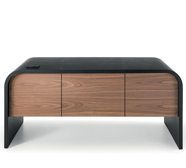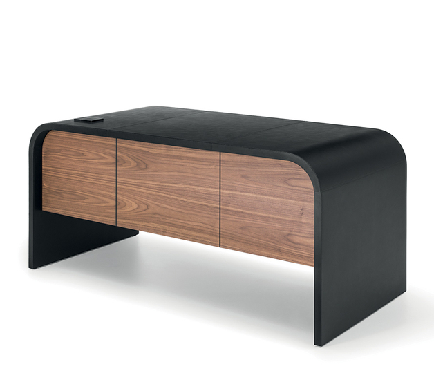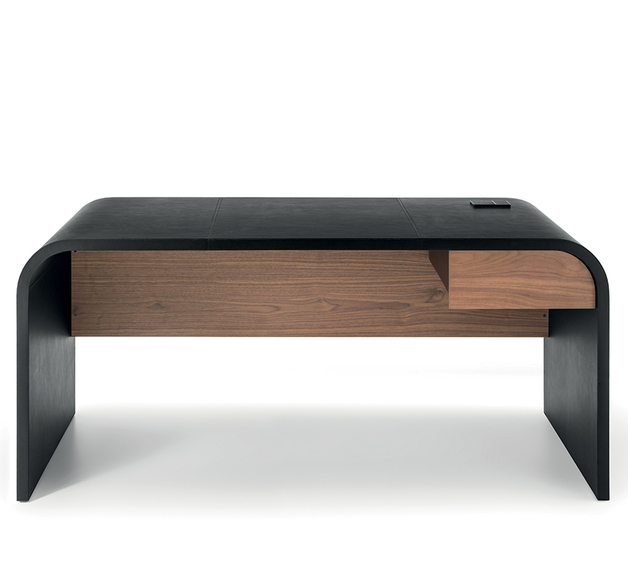 Извилистая рама письменного стола NAMI является выражением поиска гармоничной формы, волны, способной выступать в качестве контрапункта к более строгим формам внутренних помещений
