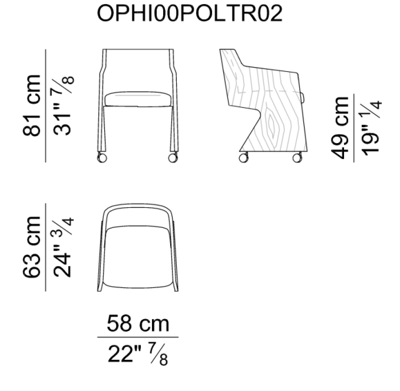 OPHY интерпретирует модель, которая стала авторитетным клише мебели: кресло-ванна. Удобное и уютное сиденье, идеально подходящее для конференц-стола, но также и вокруг обеденного стола. Каркас Ophi выполнен из штампованного мультипликатора из бука, в то время как сиденье имеет стальной каркас, дополненный пенополиуретаном. База доступна на роликах или из массива черного ореха с горками.