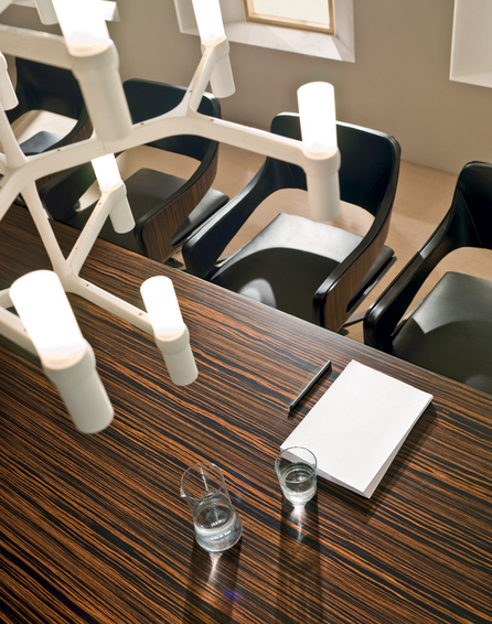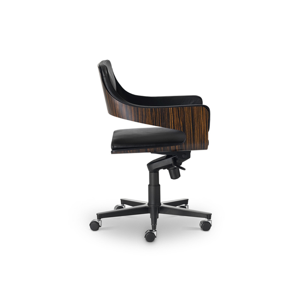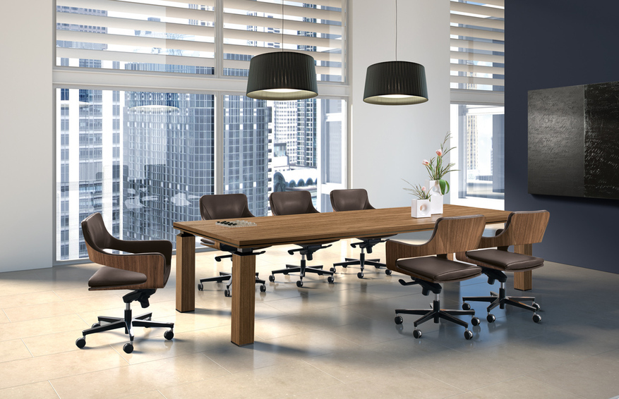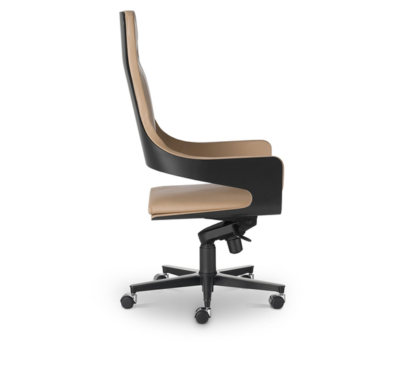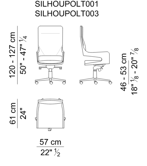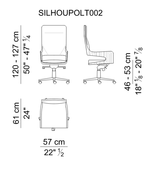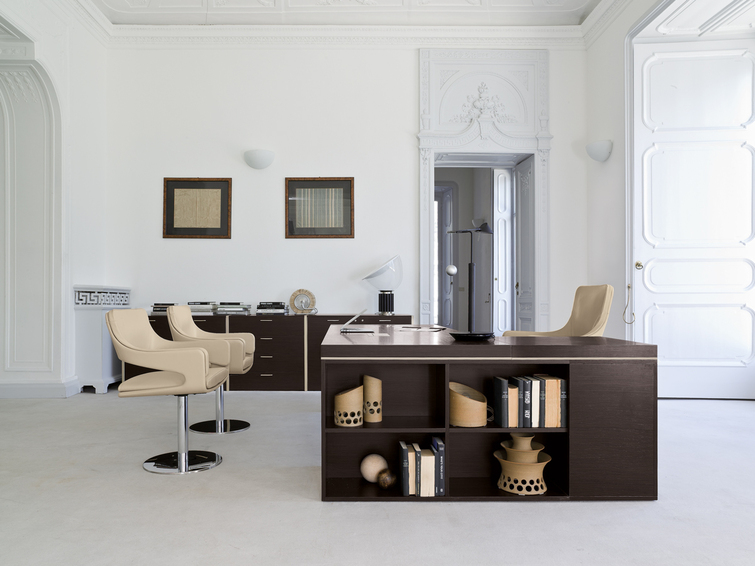 Неожиданная, кажущаяся антистатичность, в почти ненадежном равновесии из-за отсутствия физического и материального контакта между сидением и спинкой, кроме того, контур «Silhouette» — двойной, повторяется в двух материалах: внешний корпус из массива дерева, может быть лакированный, и внутрення сторона, обивка, из кожи или ткани. Это двойное повторение действует как подчеркивание, как подтверждение того тонкого профиля, где технологии и элегантность объединяются в общей легкости в целом. Извилистые линии, пересечение форм в виде бумеранга и силуэта крыльев птиц, перенесенные на лист бумаги в их основной геометрии, — все это напоминает рисунки Леонардо. Высокие, средние, низкие предметы мебели, на колесиках, на каркасной конструкции из изогнутого трубчатого профиля или на единой штоковой стальной опоре, образуют целостную серию с письменными столами и столами для заседаний одной формы или стиля и в то же время они могут быть использованы в общественных местах, таких как бары, рестораны, холлы, гостиницы, предлагая очень элегантные и современные решения для почти невесомых и подвешенных стульев и кресел.