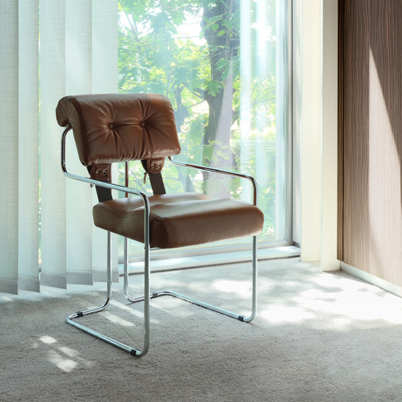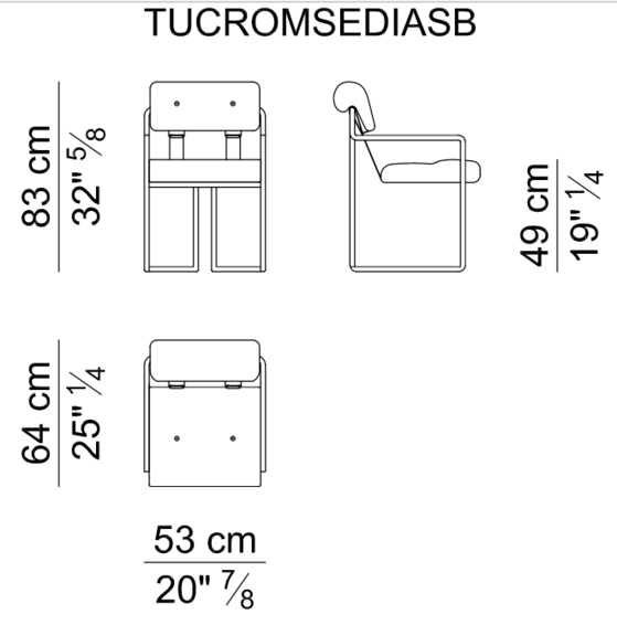 Кресло Tucroma — вторичный выпуск кресла, созданного архитектором Гуидо Фалескини в 1969 г. Это был невероятных успех. Но и сегодня оно остается одним из самых востребованных в коллекции «i 4 Mariani» из-за своих линейных и в то же время инновационных форм. Простота конструкции подчеркивает то, что лежит в основе традиции компании: обработка жесткой и мягкой кожи. Оно состоит из каркаса из хромированного стального трубчатого профиля (имеются также 9 различных цветов), создающего эффект непрерывности линий и в то же время необыкновенный комфорт во время сидения. Подушки выполнены из мягкой кожи или ткани, как для спинки, так и для сидений, соединенные между собой двумя широкими кожаными ремнями. Из-за своей простоты Tucroma прекрасно подходит как для профессиональной обстановки, так и жилой, и представлена в широкой гамме цветов и отделок.