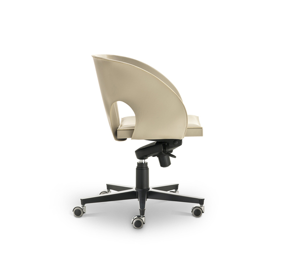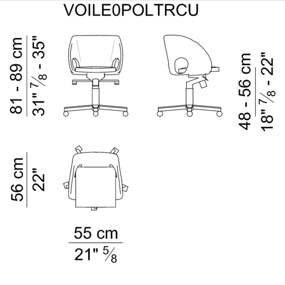 Voile представляет собой очень удобный и обнимающий стул, который становится еще более комфортным благодаря спинке, обитой шорно-седельной кожей, с мягкими линиями, напоминающими движения раскрытого паруса. Сидение представлено в корпусе из массива черного ореха с матовой отделкой, называемой «эффект воска», или стали. Обивка может быть только из шорно-седельной кожи.