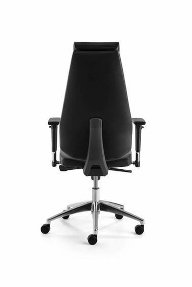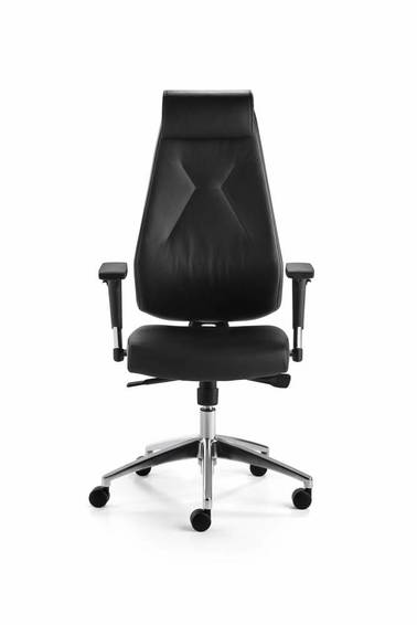 Черная кожа спереди, регулируемые по высоте подлокотники, синхронный механизм с индивидуальной регулировкой веса, подъемник, одобренный TÜV Rheinland LGA, полированная алюминиевая основа , включая большие колесики для ковров