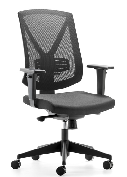 высокая сетчатая спинка и сиденье с обивкой из черной ткани, регулируемая по высоте поясничная опора, регулируемые по высоте черные пластиковые подлокотники, синхронный механизм с индивидуальной регулировкой веса, пластиковая основа черного дизайна, подъемник, протестирован TÜV Rheinland LGA, включая большие колесики для ковров, протестирован в соответствии со стандартом офисных стульев EN 1335