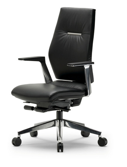 Регулируемая по высоте спинка с поясничной опорой, синхронный механизм с индивидуальной регулировкой веса, подъемник протестирован TÜV Rheinland LGA, черная пластиковая основа, включая колесики для коврового покрытия