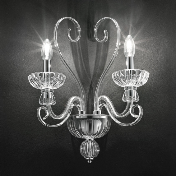Люстра из прозрачного дутого стекла ручной работы. Арматура и элементы из металла с хромовым покрытием.