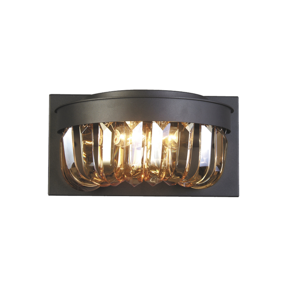 Арматура изготовлена из металла, окрашенного в черный цвет, стеклянные элементы с фацетом карамельного цвета.