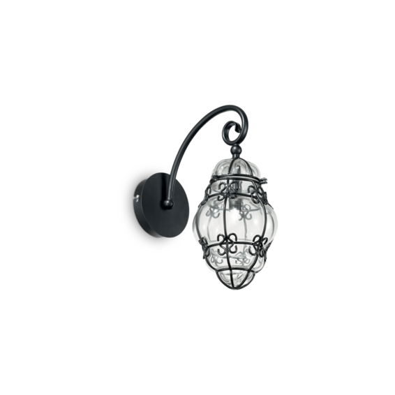 Арматура из металла ручной работы чёрного цвета. Рассеиватель из прозрачного стекла дутого вручную