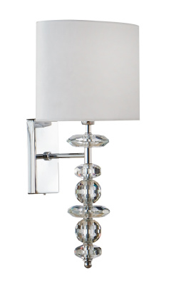 Каркас изготовлен из металла в хромированном цвете, абажур из текстиля и пластика белого цвета, хрустальные подвески прозрачного цвета. Доступен в цвете золотас бежевым абажуром - ARMANDO AP1.2 GOLD 0181/401.2.