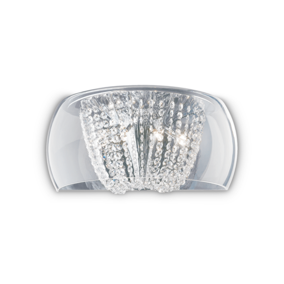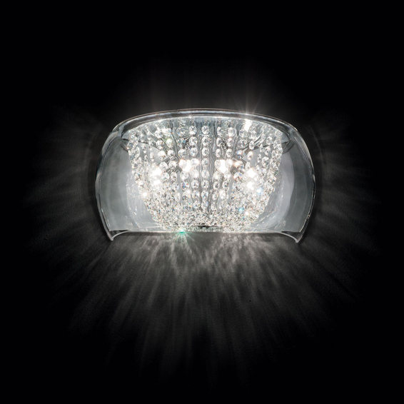 Aрматура из металла с хромированным покрытием. Цепочки восьмиугольных хрусталиков из хрусталя. Рассеиватель из дутого стекла.