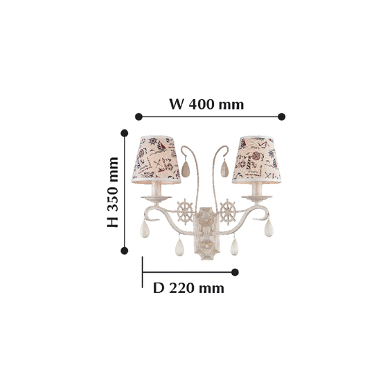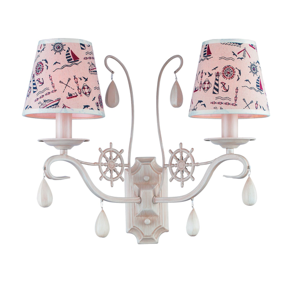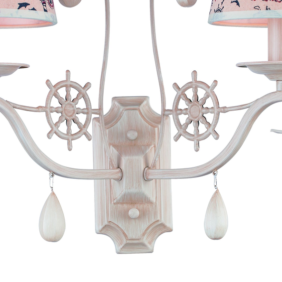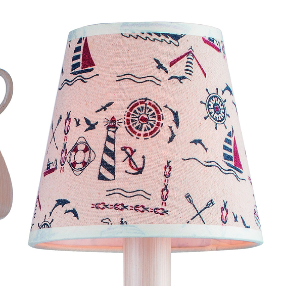 Арматура светильника сделана из металла и окрашена в бежевый цвет.Абажуры выполнены из хлопковой ткани с принтом.
