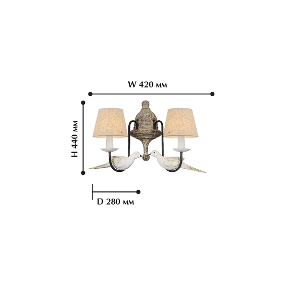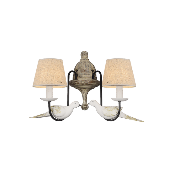 Арматура из металла черного цвета, абажуры - из ткани под рогожку, декоративные элементы птичек изготовлены вручную из гипса.