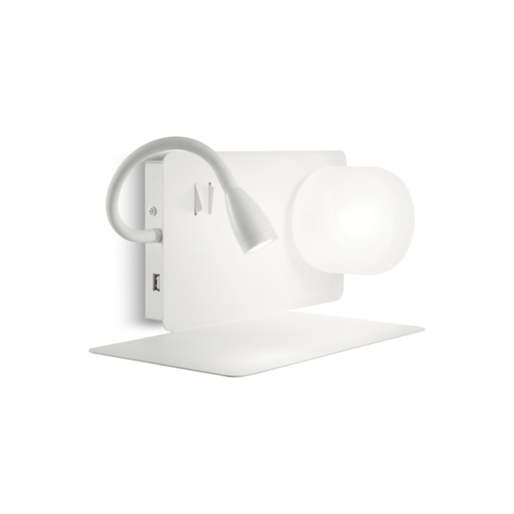 Металлическая арматура порошковой окраски. Рассеиватель из стекла матового. Гибкий резиновый рожок с ЛЕД. Двойной выключатель. USB выход.